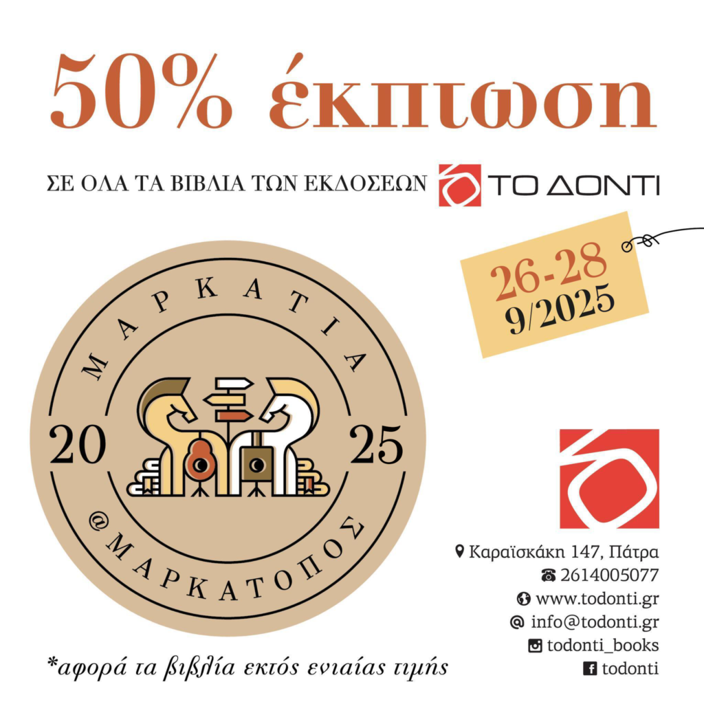 – Στο βιβλιοπωλείο «Το Δόντι» (Καραϊσκάκη 147), όλα τα βιβλία των εκδόσεων με 50% έκπτωση
